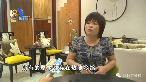 杭州璟望府全屋訂制家居店 蘇老板:“你說廠家有沒有做好,的確是有兩個沒有做好,裂縫是有的,我看見了,木頭是天然的物品,是一個活的物品,一切的原木都存在熱脹冷縮,造成的開裂的狀況,一切廠家一切木頭都存在這個狀況,腐臭呢那時咱們去看的時候,他沒有把背后撬開,咱們看見的是一個彩色的節疤,爛還是不爛這個能夠去探測的,木頭原本的節疤,一切的木頭全是有節疤的。”
