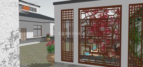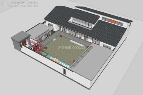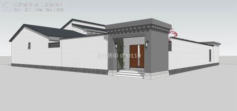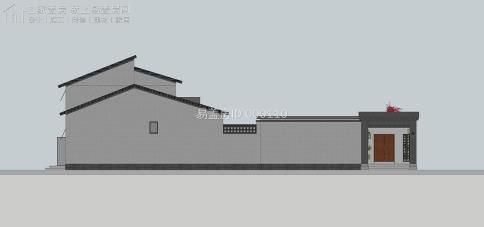總體建筑利用華夏的傳統(tǒng)四合院布局,除堂屋局部二層之外,其他的仍舊為一層雙坡頂,主通道采取新中式的解決手段,圍墻則是采取紅色墻體加青磚檐口,充足細節(jié);