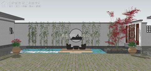 主通道線腳和屋檐細節(jié)相對充足,起到引人注重的功效,木色大門和局部鏤空的深灰色網格相得益彰,雙側設置竹池,寓意節(jié)節(jié)升;