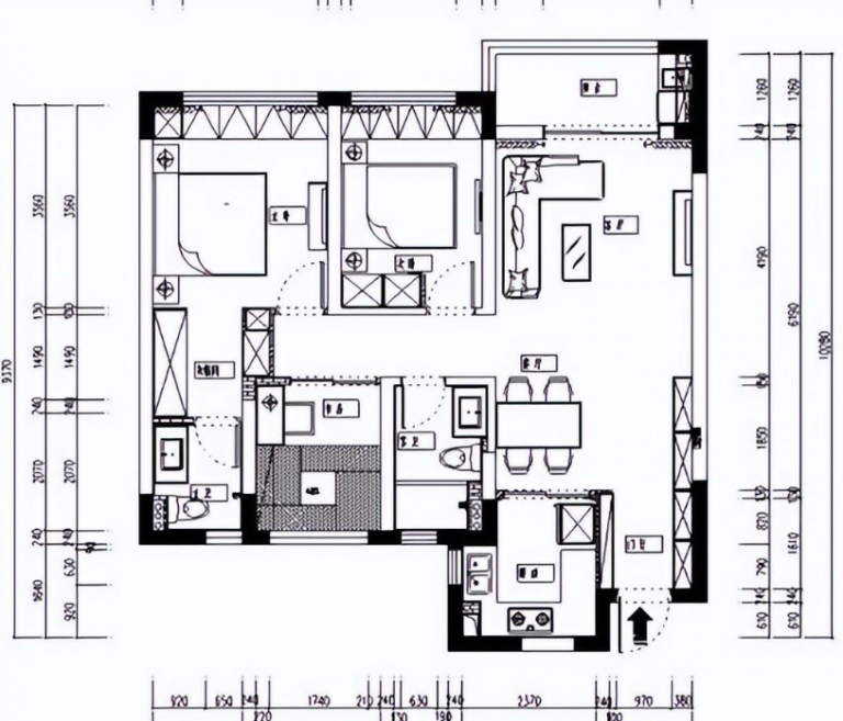 這是原始結(jié)構(gòu)戶型圖,屬于比較典型的戶型了,套內(nèi)面積僅有89平,但是也足夠滿足一家基本生活需求了!對(duì)于這樣的戶型,其實(shí)我們都比較常見,也不是那么陌生。動(dòng)靜分區(qū)其實(shí)非常合理,盡管不是屬于南北通透的戶型。