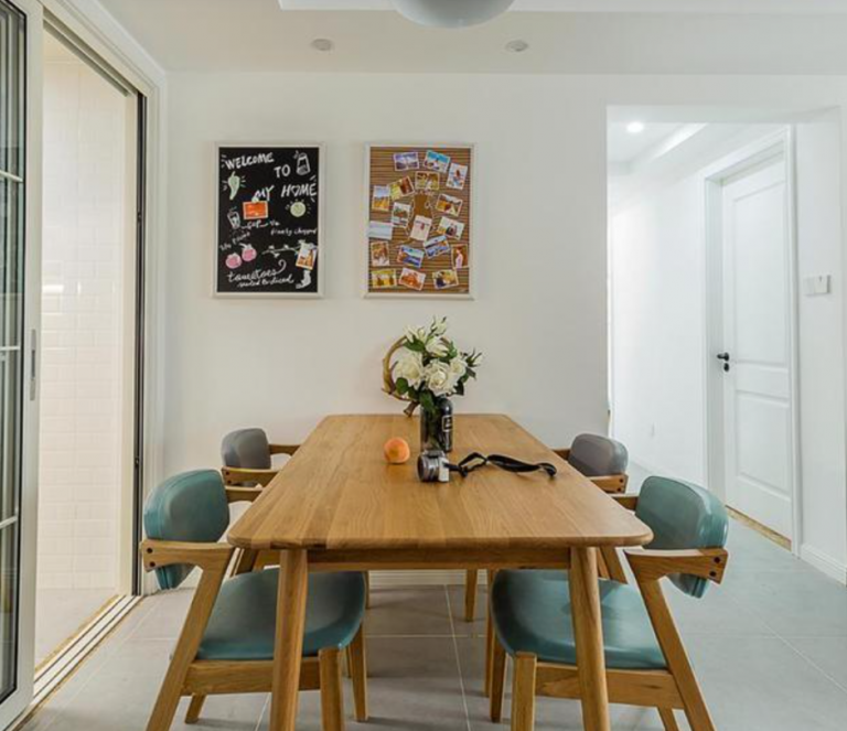 餐廳布置了一張?jiān)痉叫尾妥?,餐椅搭配了藍(lán)色的坐墊,坐著特別舒服,搭配起來(lái)不會(huì)讓人覺得單調(diào),特別耐看。旁邊移動(dòng)門進(jìn)去就是廚房了,煮好的飯菜可以很快端出來(lái),方便用餐。其實(shí),不管是橫豎擺放,都沒(méi)有任何影響。一家人開開心心坐在一起用餐,很幸福!包括墻面安裝的吊燈,墻上懸著的裝飾畫,可以起到很好的裝飾效果,顯得很溫馨呢!
