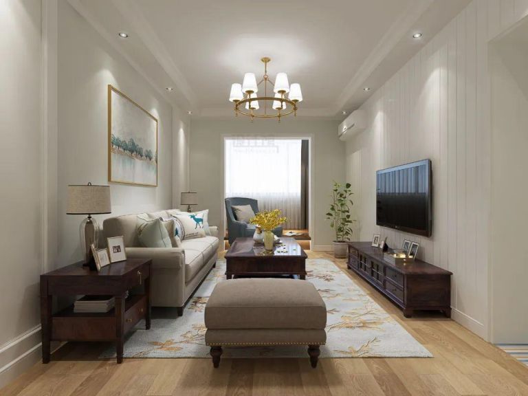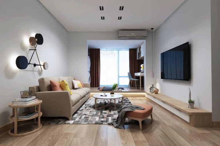 通過成品定制的簡潔護墻板,貼在電視墻上既可以保護電視墻,又能通過簡潔舒適的質(zhì)感讓客廳顯得更加現(xiàn)代舒適而大方;不過護墻板的款式比較豐富,需要選擇適當(dāng)?shù)目钍讲拍茏龅胶喖s大方的效果;但由于使用護墻板的裝修成本相對較高,因此一般家庭裝修都不會大面積使用,在電視墻上適當(dāng)加入作為點綴裝飾,效果還是不錯的。