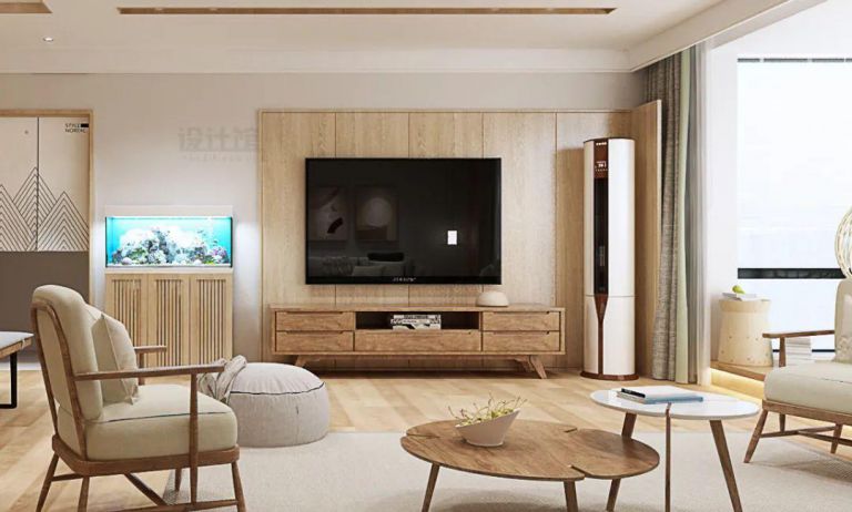 木飾面與護墻板的材質(zhì)類似,不過木飾面一般都是以木色為主,視覺效果相對比較簡約自然;一般用木飾面做電視墻的話,建議選用橡木色的,這種木色比較淺、紋理也自然,整體效果會更加簡約大方。