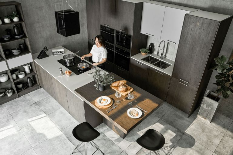 最近,中性灰色一直是許多家庭關注的焦點。它通常被歸類為太冷,但如果巧妙地協調,灰色可以在你的廚房里創造奇跡。最重要的是,它與許多其他顏色完美搭配,可以成為完美的基礎。灰色適用于廚柜或臺面。