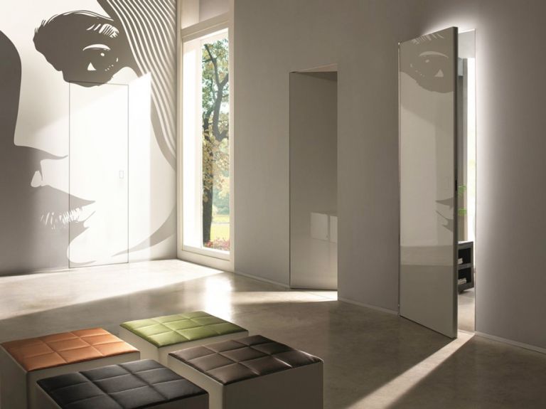 順便說一句,天花板門開始流行,也可以是隱藏模型。他們肯定讓房間更高。誠然,它們通常只能安裝在您自己的房子里,這是由項目提供的,這與大多數帶有標準門口的公寓不同。